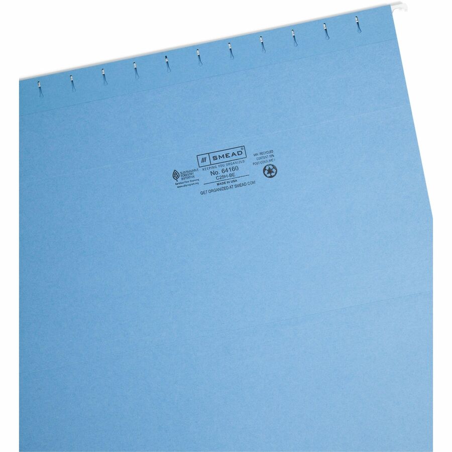 Smead Colored 1/5 Tab Cut Legal Recycled Hanging Folder - 8 1/2" x 14" - Top Tab Location - Assorted Tab Position - 11 pt. - Blue - 10% Recycled - 25 / Box