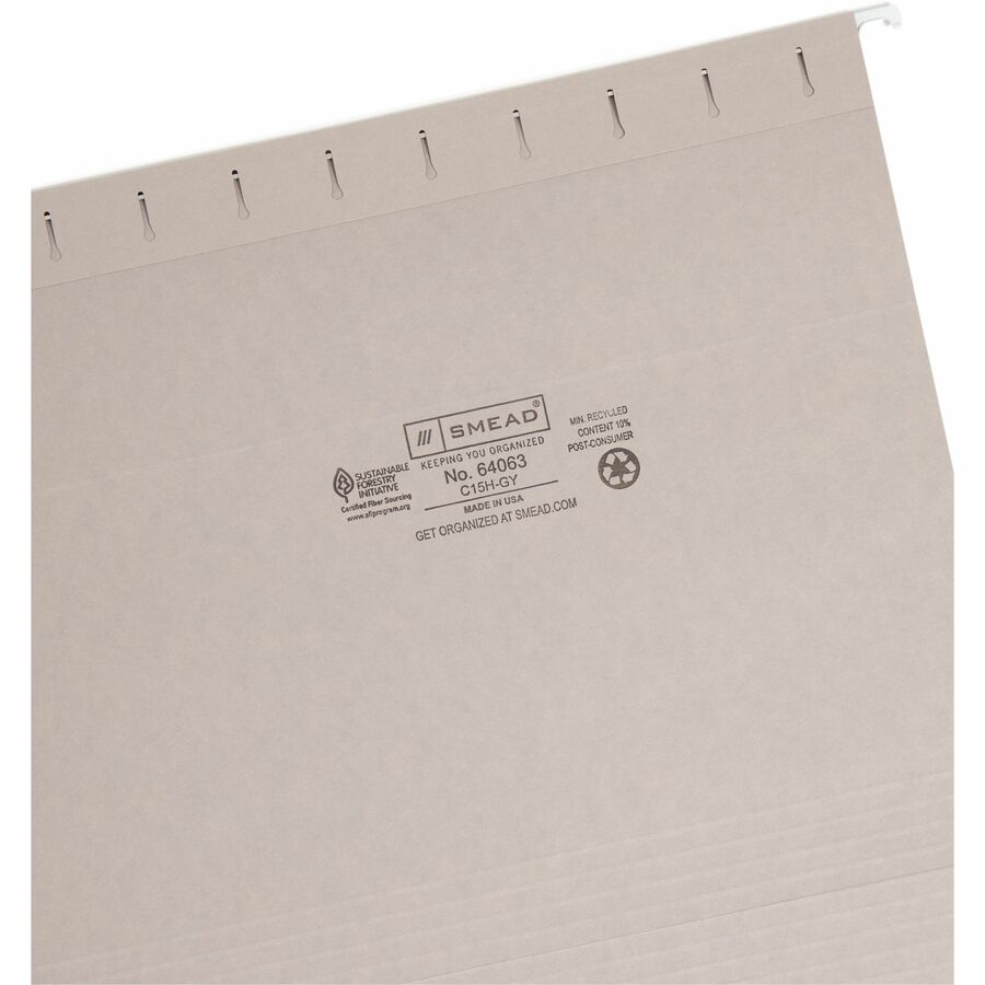 Smead Colored 1/5 Tab Cut Letter Recycled Hanging Folder - 8 1/2" x 11" - Top Tab Location - Assorted Tab Position - 11 pt. - Vinyl - Gray - 10% Recycled - 25 / Box