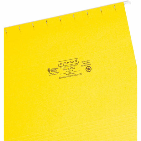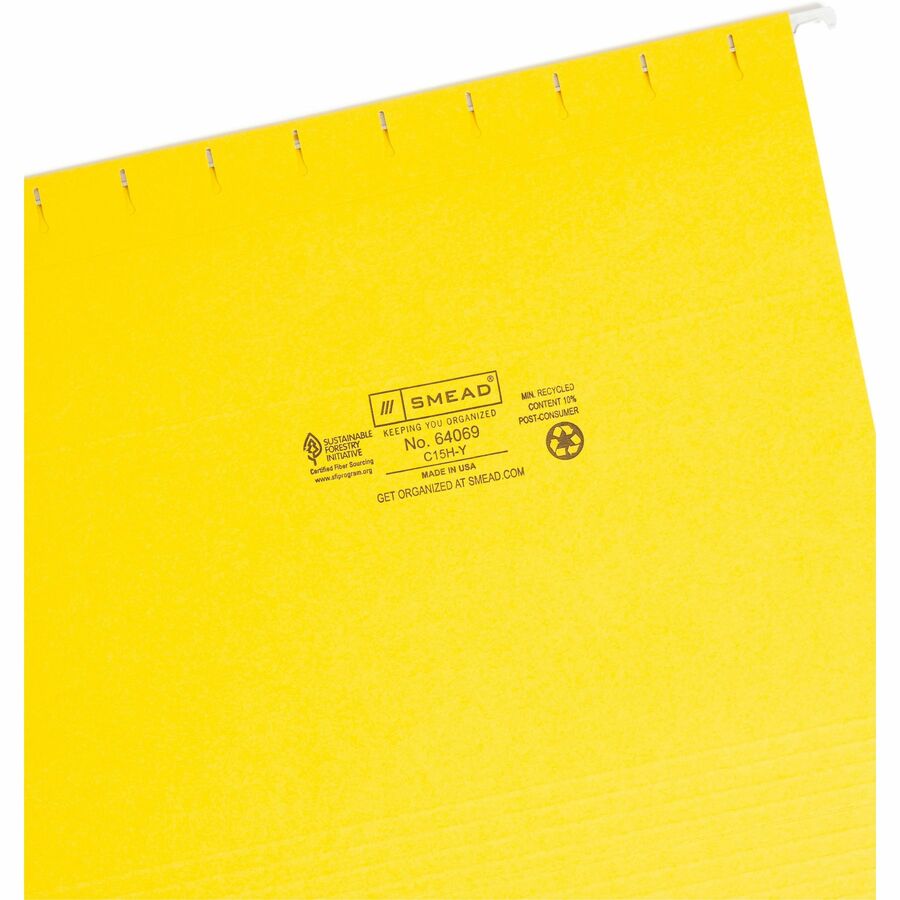 Smead Colored 1/5 Tab Cut Letter Recycled Hanging Folder - 8 1/2" x 11" - Top Tab Location - Assorted Tab Position - 11 pt. - Vinyl - Yellow - 10% Recycled - 25 / Box