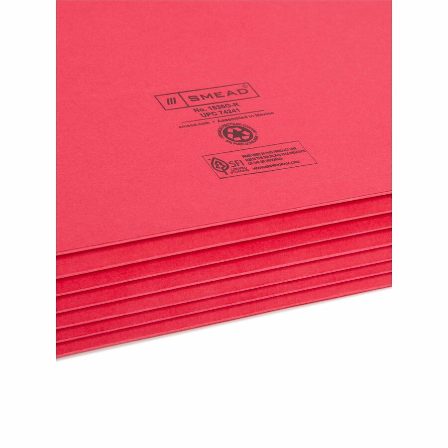 Smead Colored Straight Tab Cut Legal Recycled File Pocket - 8 1/2" x 14" - 5 1/4" Expansion - Top Tab Location - Red - Tear Resistant - 10% Recycled - 1 Each