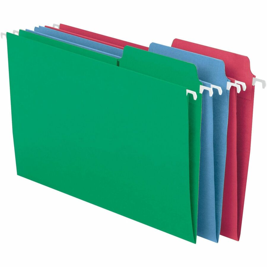 Smead FasTab 1/3 Tab Cut Legal Recycled Hanging Folder - 8 1/2" x 14" - Top Tab Location - Assorted Tab Position - 11 pt. - 2 Plys - Red, Green, Blue - Reinforced Tab, Heavy Duty, Embossed - 10% Recycled - 18 / Box
