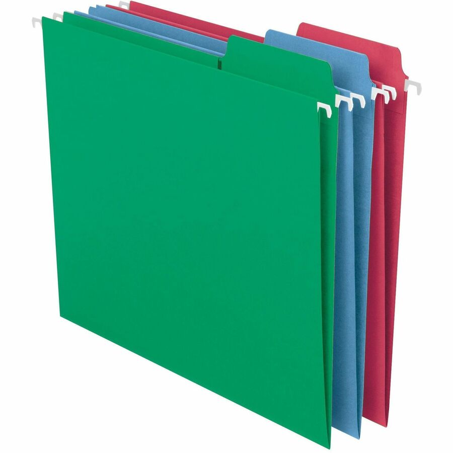 Smead FasTab 1/3 Tab Cut Letter Recycled Hanging Folder - 8 1/2" x 11" - Top Tab Location - Assorted Tab Position - 11 pt. - 2 Plys - Blue, Green, Red - Reinforced Tab, Embossed - 10% Recycled - 18 / Box