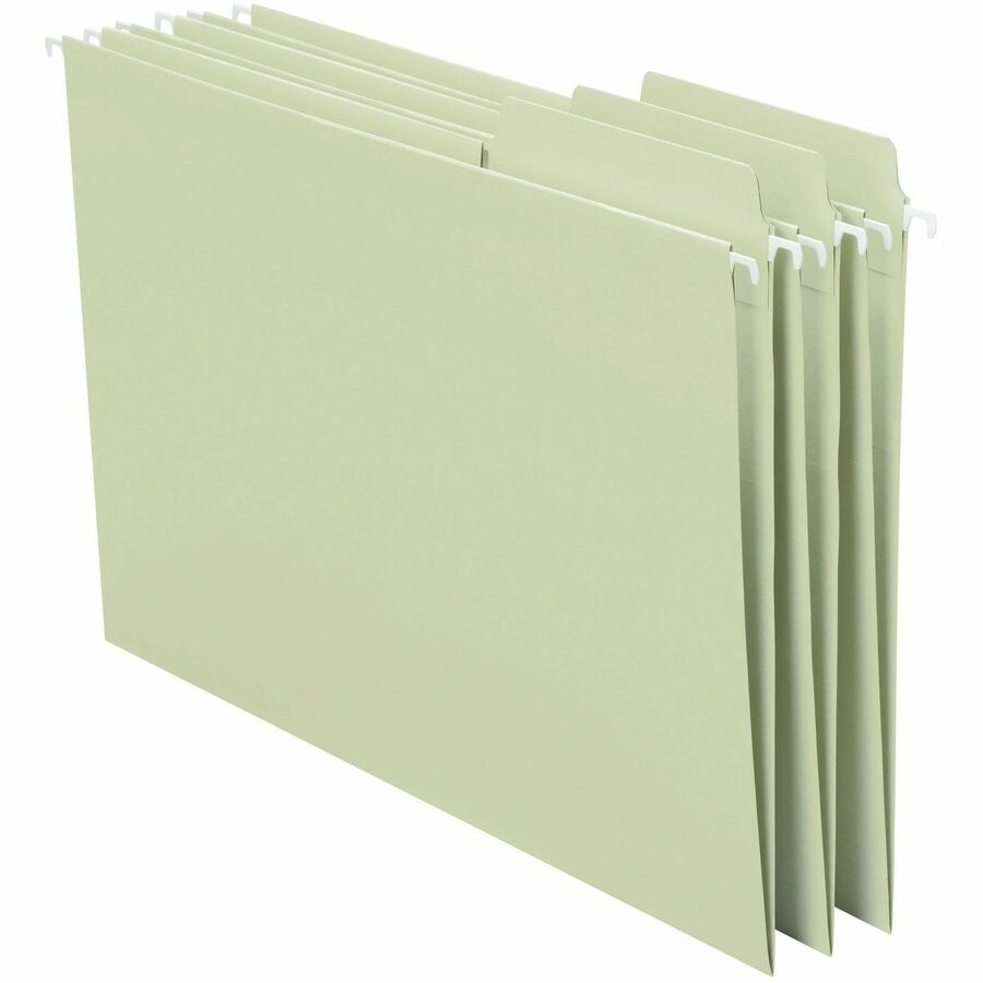 Smead FasTab 1/3 Tab Cut Letter Recycled Hanging Folder - 8 1/2" x 11" - Top Tab Location - Assorted Tab Position - 11 pt. - 2 Plys - Moss - Tear Resistant, Heavy Duty, Embossed - 10% Recycled - 20 / Box