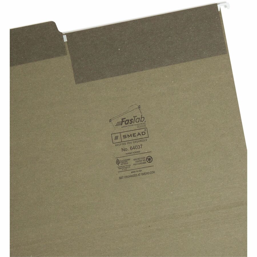 Smead FasTab 1/3 Tab Cut Letter Recycled Hanging Folder - 8 1/2" x 11" - Top Tab Location - Assorted Tab Position - 11 pt. - Standard Green - Reinforced Tab - 100% Paper Recycled - 20 / Box