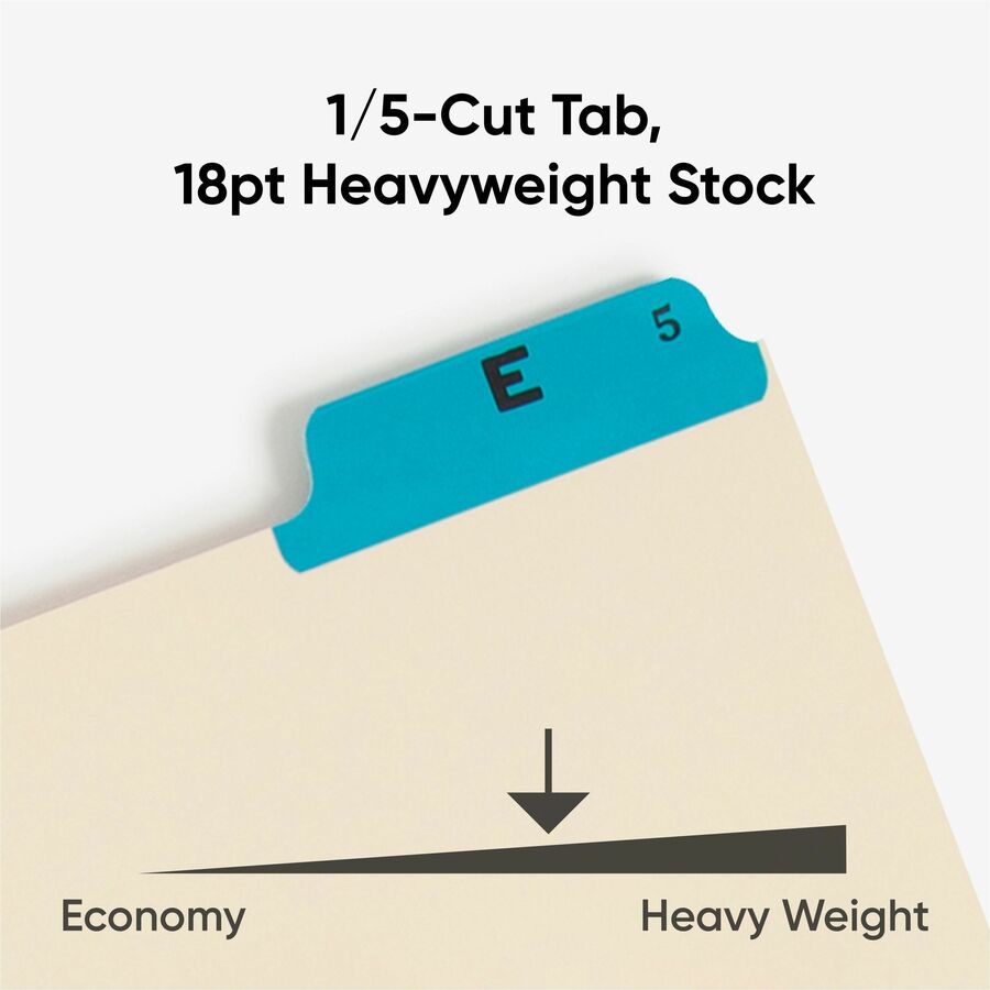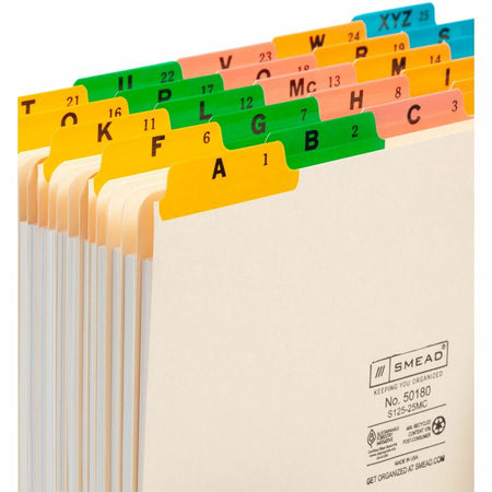Smead Filing Guides with Alphabetic Indexing - 25 Printed Assorted Tab(s) - Character - A-Z - 25 Tab(s)/Set - Letter - Yellow Manila, Green, Pink, Salmon, Blue Tab(s) - 10% Recycled - 25 / Set