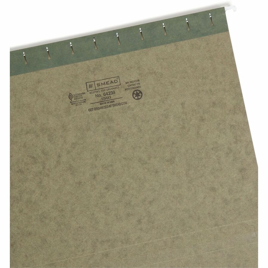 Smead Letter Recycled Hanging Folder - 8 1/2" x 11" - 1" Expansion - 11 pt. - Pressboard - Standard Green - Reinforced Base - 10% Recycled - 25 / Box