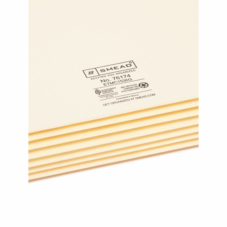 Smead Straight Tab Cut Legal Recycled File Pocket - 8 1/2" x 14" - 5 1/4" Expansion - 11 pt. - 2 Plys - Manila - Reinforced Gusset, Embossed - 10% Recycled - 10 / Box