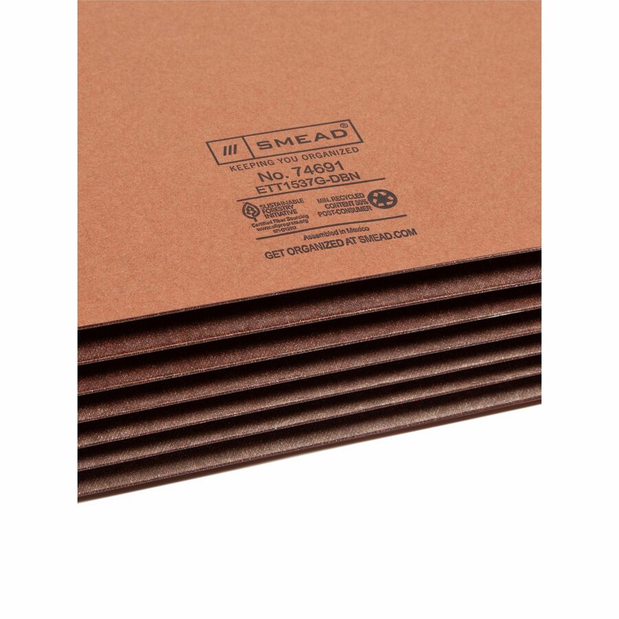 Smead Straight Tab Cut Legal Recycled File Pocket - 8 1/2" x 14" - 5 1/4" Expansion - End Tab Location - 12.5 pt. - 2 Plys - Dark Brown - Embossed - 30% Recycled - 10 / Box