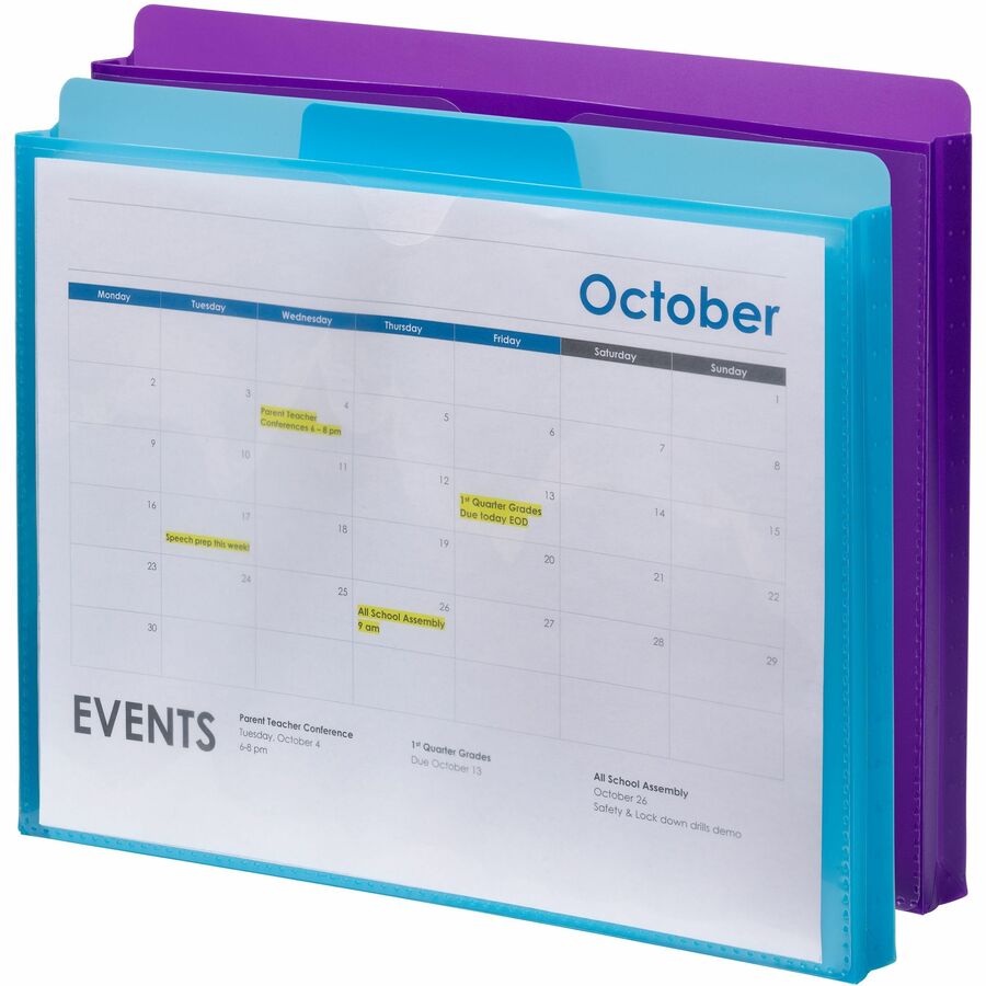 Smead Straight Tab Cut Letter File Jacket - 8 1/2" x 11" - 1" Expansion - Purple, Teal - 2 / Pack
