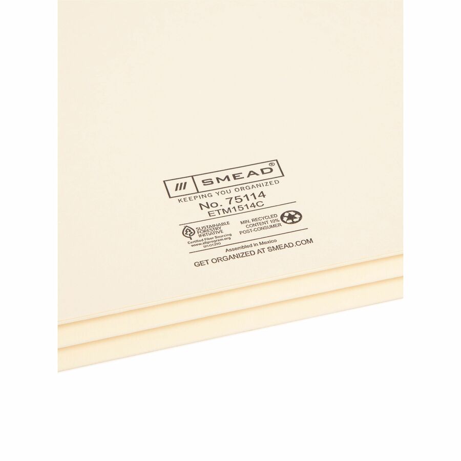 Smead Straight Tab Cut Letter Recycled File Pocket - 8 1/2" x 11" - 1 3/4" Expansion - 2 Plys - Manila - Embossed - 10% Recycled - 25 / Box