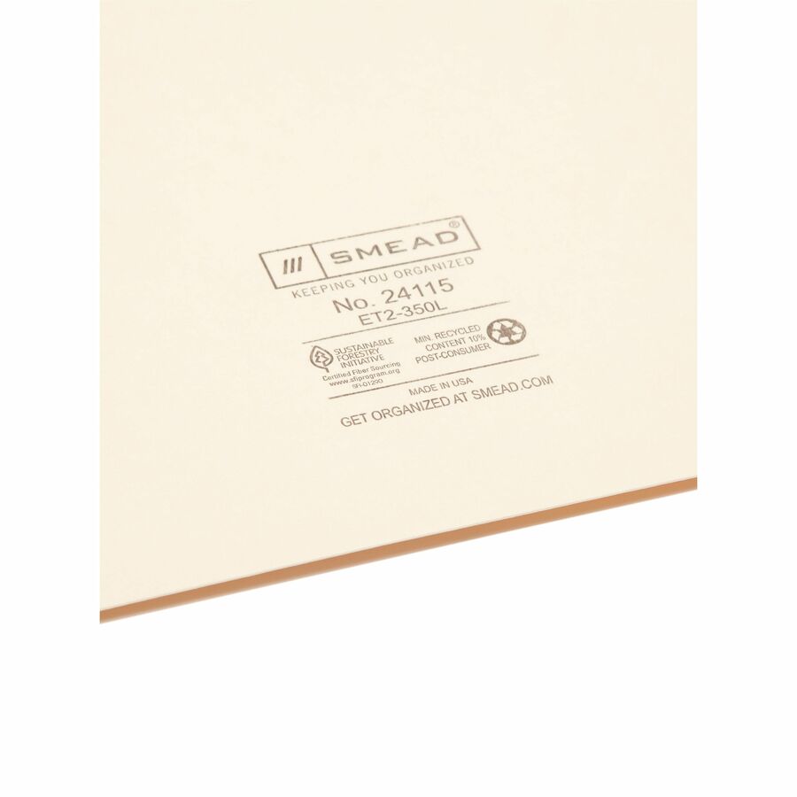 Smead Straight Tab Cut Letter Recycled File Pocket - 8 1/2" x 11" - 1 Pocket(s) - 11 pt. - 2 Plys - Manila - Heavyweight Cover, Embossed - 10% Recycled - 50 / Box