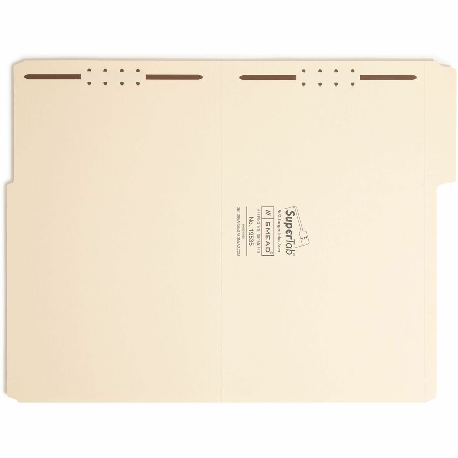 Smead SuperTab 1/3 Tab Cut Legal Recycled Fastener Folder - 8 1/2" x 14" - 3/4" Expansion - 2 x 2K Fastener(s) - Top Tab Location - Assorted Tab Position - 11 pt. - 2 Plys - Manila - Reinforced Tab - 10% Recycled - 50 / Box