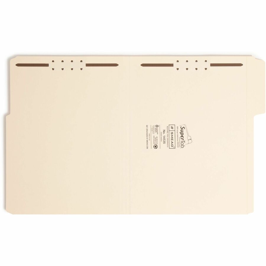Smead SuperTab 1/3 Tab Cut Letter Recycled Fastener Folder - 8 1/2" x 11" - 3/4" Expansion - 2 x 2K Fastener(s) - 2" Fastener Capacity - Top Tab Location - Assorted Tab Position - 11 pt. - 2 Plys - Manila - Reinforced Tab - 10% Recycled - 50 / Box