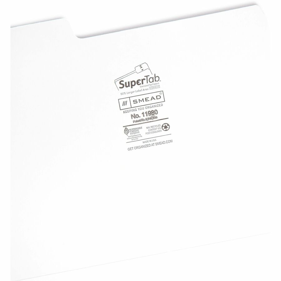 Smead SuperTab 1/3 Tab Cut Letter Recycled Top Tab File Folder - 8 1/2" x 11" - 3/4" Expansion - Assorted Tab Position - 11 pt. - White - 10% Recycled - 100 / Box