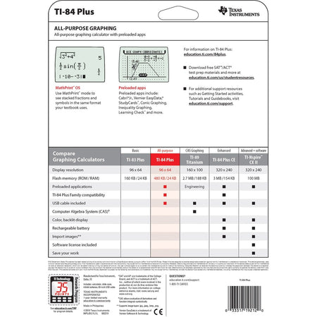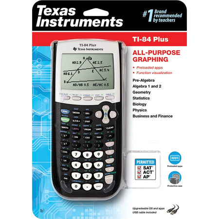 Texas Instruments TI-84 Plus Graphing Calculator - Clock, Date, Battery Backup - 24 KB, 480 KB - RAM, Flash - 8 Line(s) - 16 Digits - Battery Powered - 4 x AAA - 0.9" Height x 3.3" Width x 7.5" Depth - Black - 1 Each