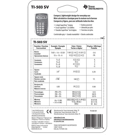 Texas Instruments TI503 SuperView Pocket Calculator - 8 Digits - LCD - Battery Powered - 0.7" Height x 3.1" Width x 4.8" Depth - Blue, Gray - 1 Each