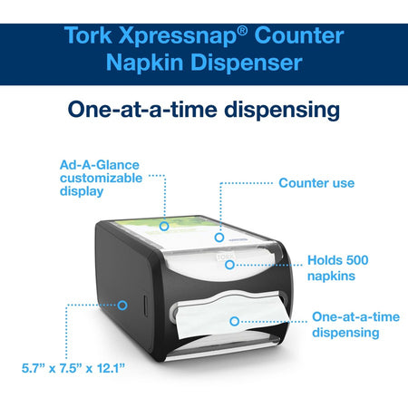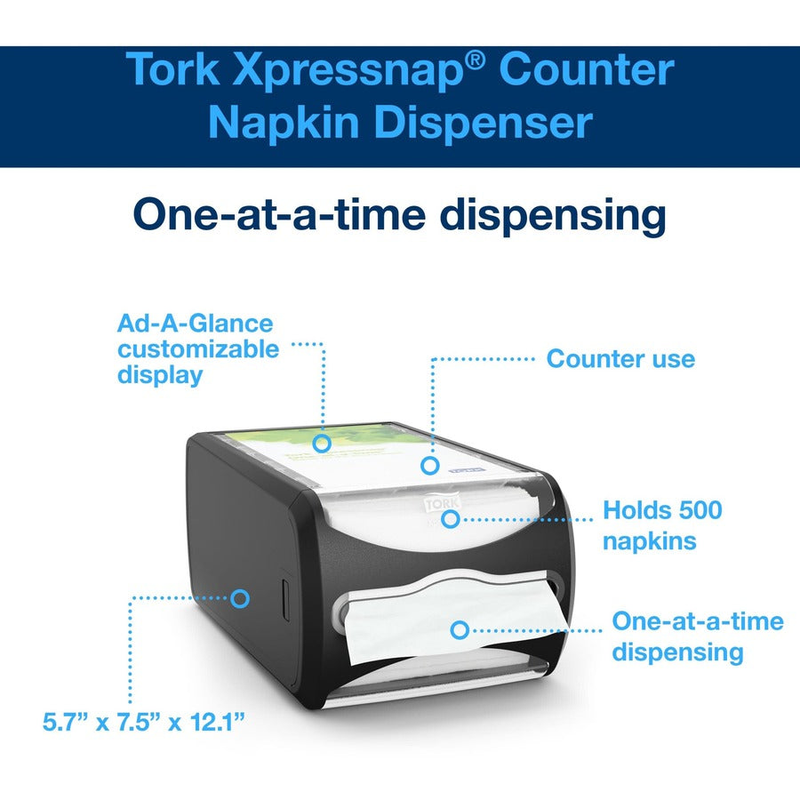 TORK Xpressnap Counter Napkin Dispenser Black N4 - 5.7" Height x 7.5" Width x 12.1" Depth - Plastic - Licorice - Hygienic, Durable, Easy to Clean, Window - 1 Each