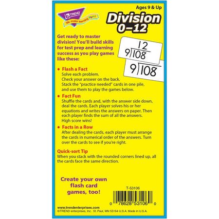 Trend Division 0-12 Flash Cards - Learning - Educational - 91 / Box