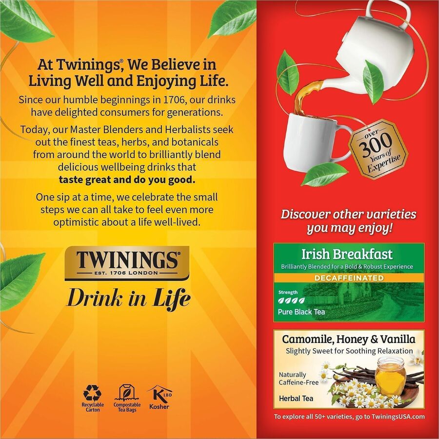 Twinings of London Decaf English Breakfast Black Tea Bag - Black Tea - 1.8 oz - 25 / Box