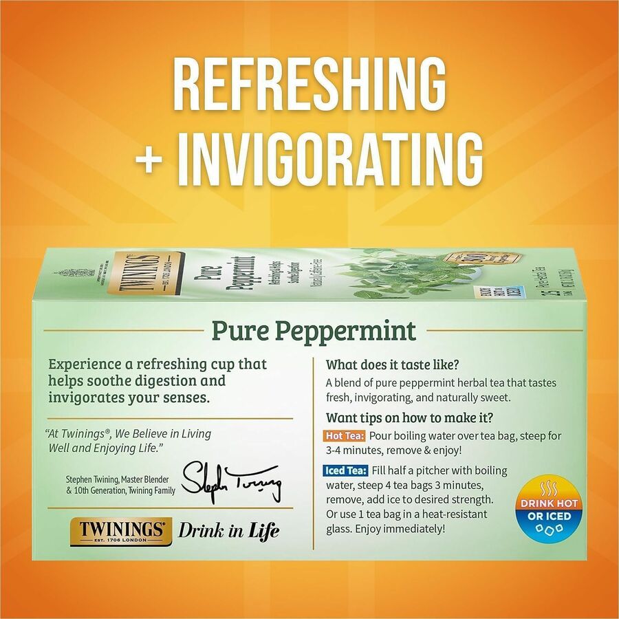 Twinings of London Pure Peppermint Herbal Tea Bag - Herbal Tea - 1.8 oz - 25 / Box