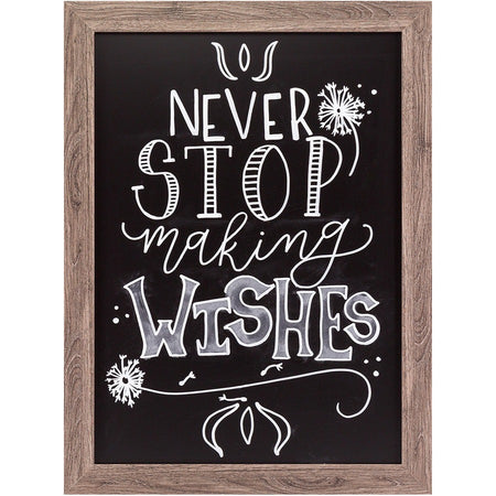 Enhance your space with the Decor Magnetic Chalkboard, featuring a natural and contemporary surface that exudes charm and functionality. The rustic 1-1/2" wide decorative wood frame, crafted from medium-density fiberboard, not only adds durability but also elevates the overall aesthetic with its designer appeal.