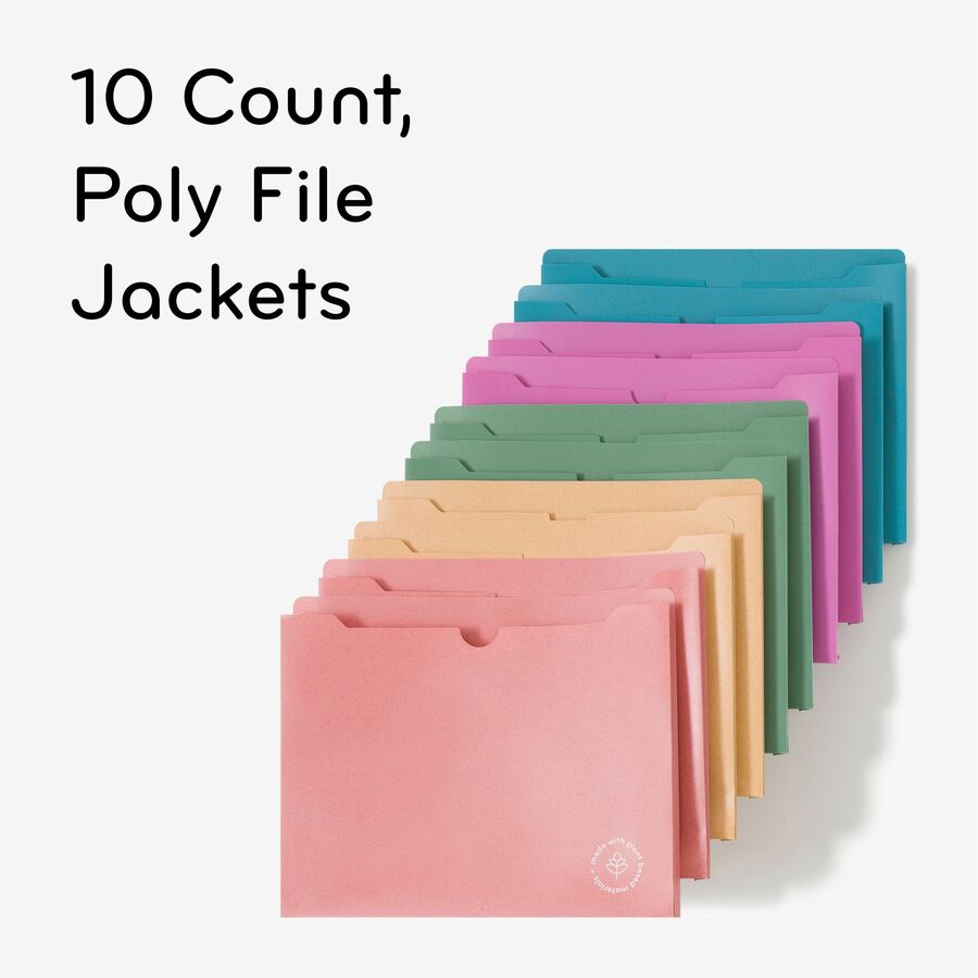 U Brands U-Eco Straight Tab Cut Letter File Jacket - 8 1/2" x 11" - 1" Expansion - 1 Pocket(s) - Poly - Assorted - 0% Recycled - 10 / Pack