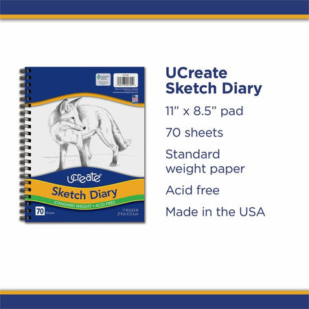 UCreate Art1st Sketch Diary - Letter - 70 Sheets - Plain - Spiral - Letter - 8 1/2" x 11" Sheet Size - White Paper - Acid-free - Recycled - 1 Pad