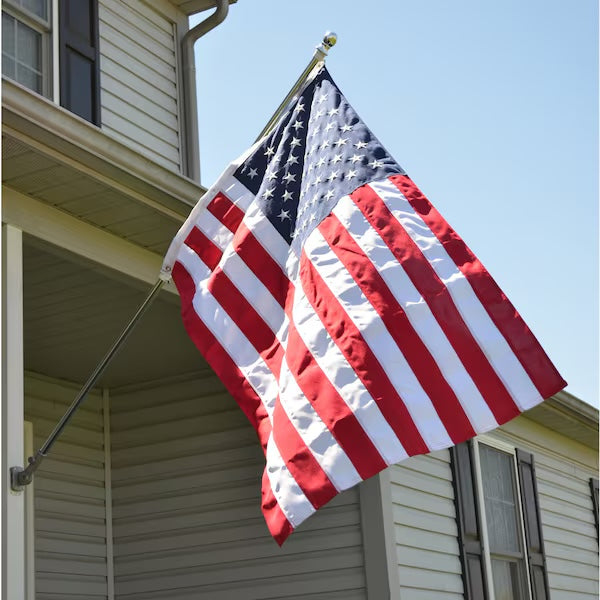 This 3 ft. by 5 ft. sewn 2-ply spun polyester U.S. flag comes with brass grommets and features sewn stripes and embroidered stars. Flag is 100% made in the U.S.A.