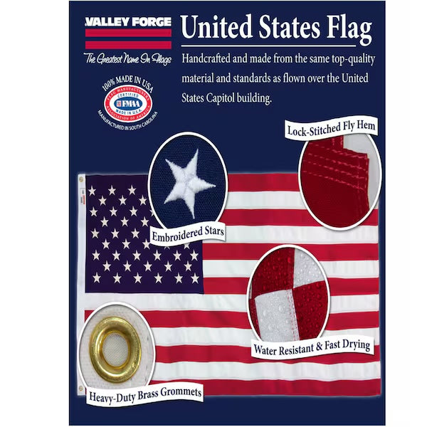 Valley Forge American Flag 3' x 5', embroidered, polyester, 2 pack