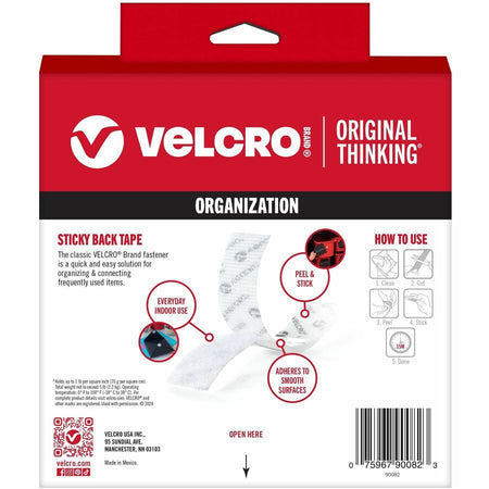 VELCRO® Sticky Back 15ft x 3/4in Roll White - 15 ft Length x 0.75" Width - White - For Mount Picture/Poster, Multi Surface, Smooth Surface, Indoor, Outdoor, Home, School, Office - 1 Roll