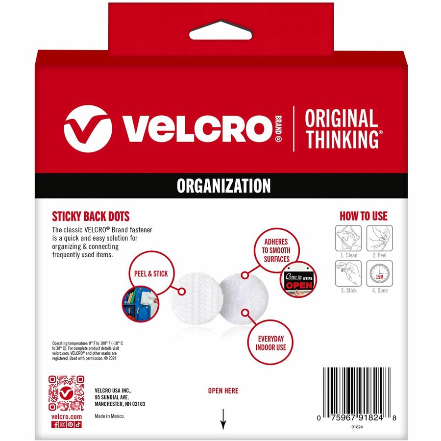 VELCRO® Sticky Back 3/4in Circles White 200 ct - 0.75" Diameter - White - For Sign, Poster, Wall, Plastic, Glass, Tile, Home, School - 200 / Box