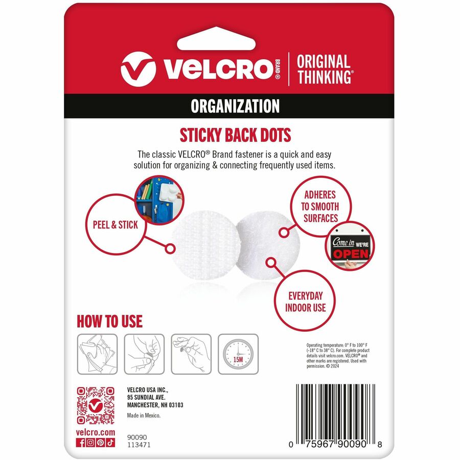 VELCRO® Sticky Back 5/8in Circles White 75 Ct - 0.59" Length x 0.59" Width x 0.63" Diameter - White - Adhesive Backing - Dispenser Included - For Glass, Metal, Plastic, Wood, Tile, Indoor, Smooth Surface, Outdoor, Home, School, Office - 75 / Pack