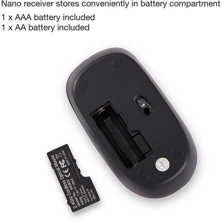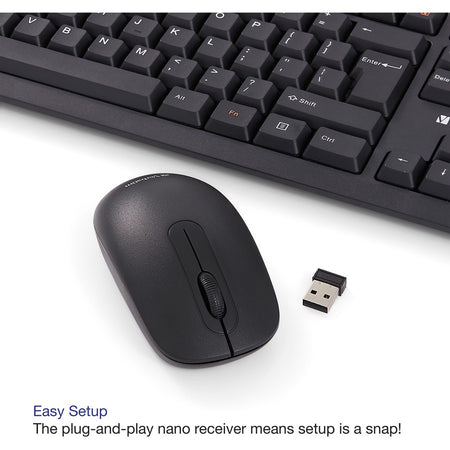 Cut the cord with this Wireless Keyboard and Mouse combo that offers seamless 2.4Ghz wireless communication, ensuring no delays between your typing and on-screen actions. The included nano receiver is conveniently small, allowing you to plug it in once and stay connected effortlessly.