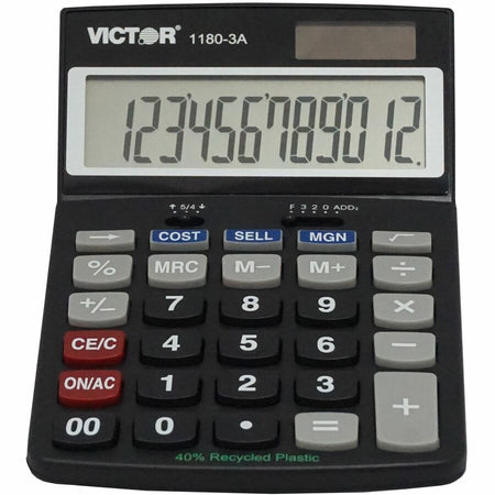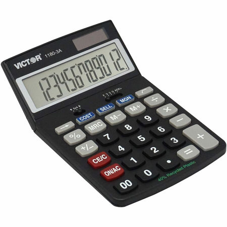 Victor 11803A Business Calculator - Easy-to-read Display, Auto Power Off - 12 Digits - LCD - Battery/Solar Powered - 1.1" Height x 4" Width x 6.5" Length - Black - Plastic - 1 Each