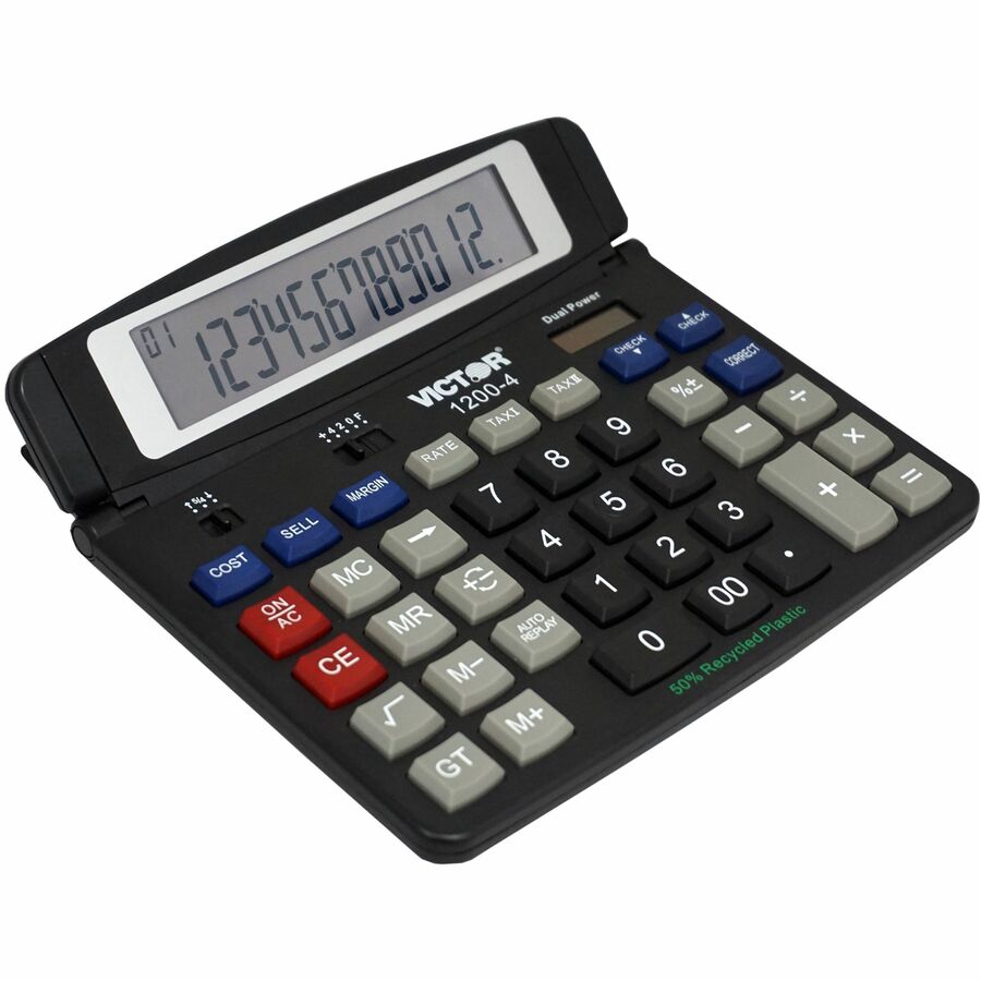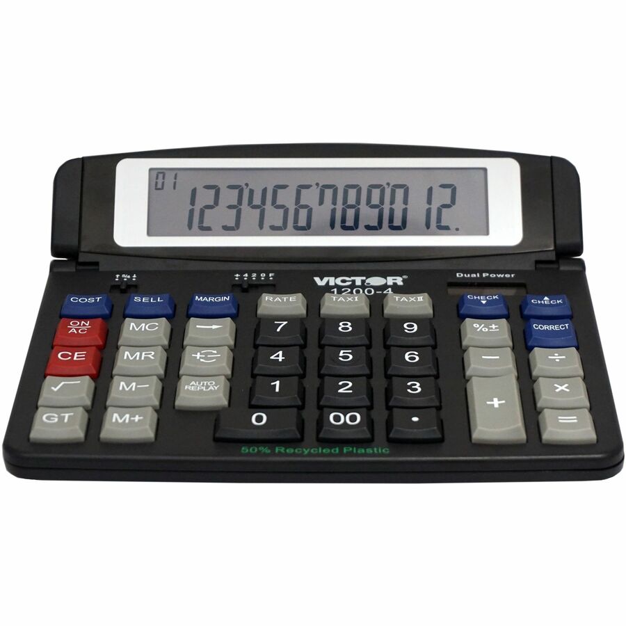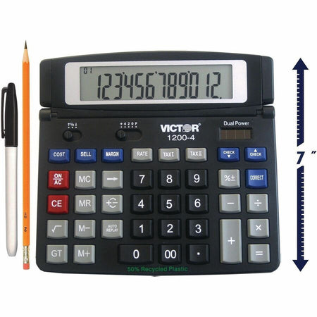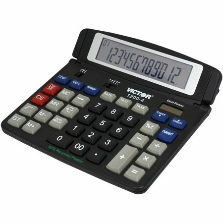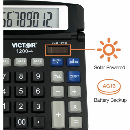 Victor 12004 Desktop Calculator - Auto Power Off, Big Display, Auto Replay, Easy-to-read Display, Dual Power - 12 Digits - LCD - Battery/Solar Powered - 0.5" Height x 7.2" Width x 6.4" Depth - Black - 1 Each