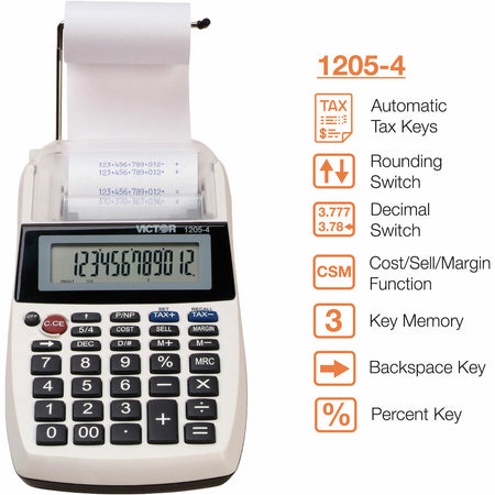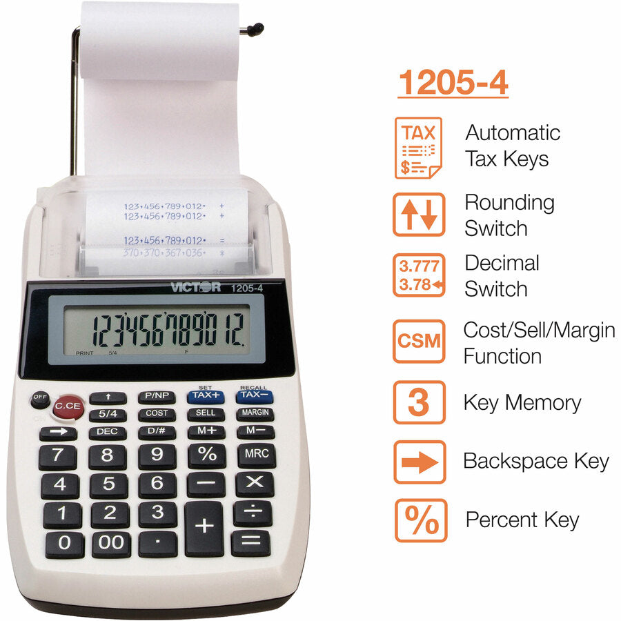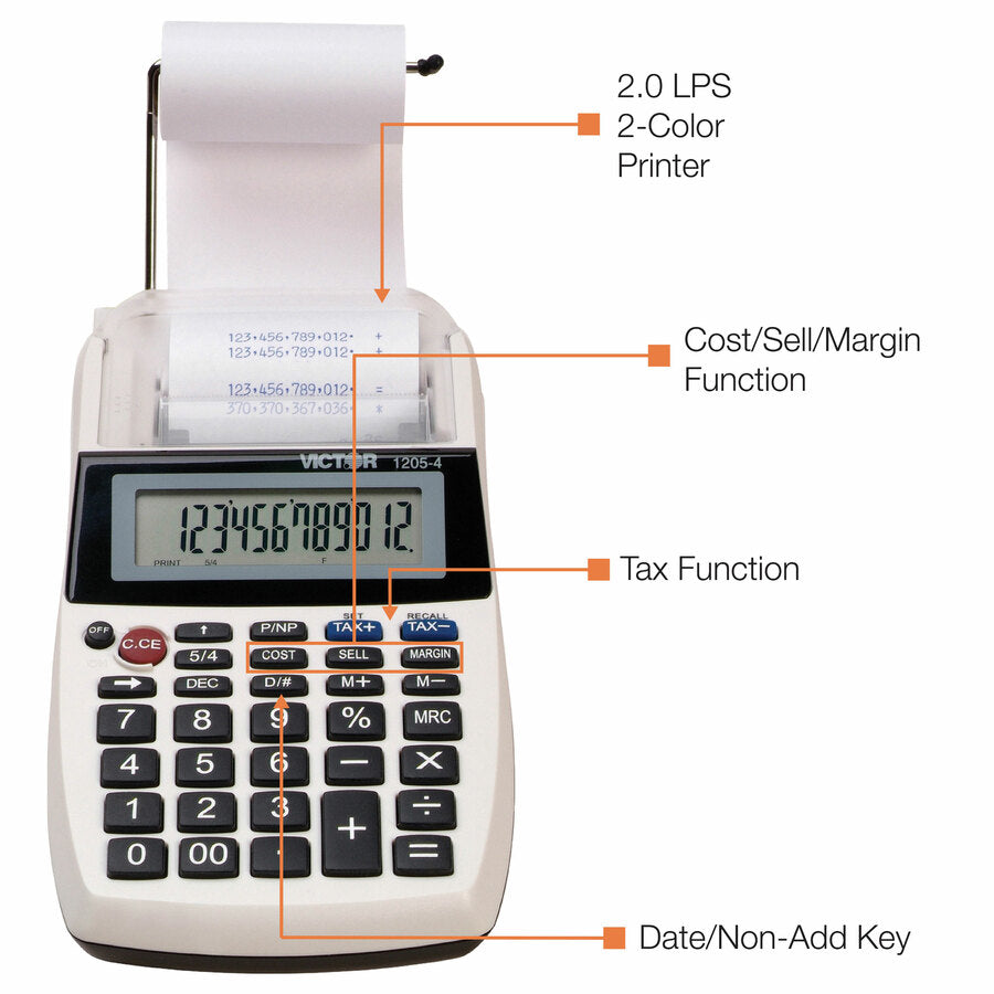 Victor 12054 Printing Calculator - Environmentally Friendly, Large Display, Independent Memory, 3-Key Memory - Power Adapter Powered - 1.8" Height x 4" Width x 8" Depth - Multi, Black - 1 Each