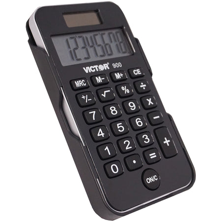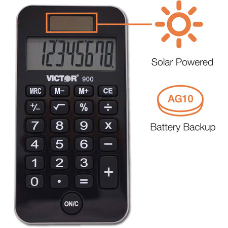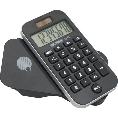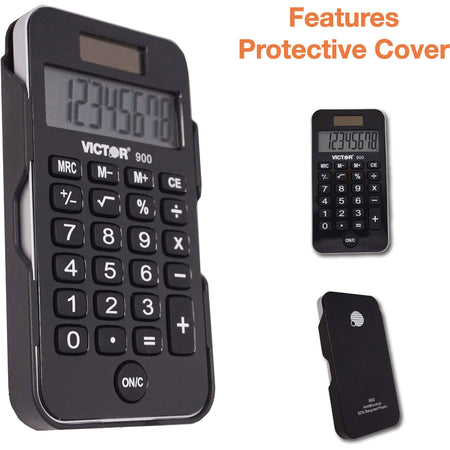 Victor 900 Handheld Calculator - Protective Hard Shell Cover, Big Display, Independent Memory, Dual Power - 0.55" - 8 Digits - LCD - Battery/Solar Powered - 0.3" Height x 2.5" Width x 4.3" Depth - Black - Rubber - 1 Each