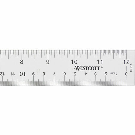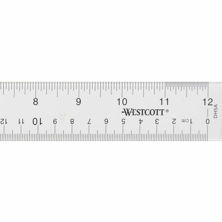 Westcott 12" Transparent Ruler - 12" Length x 1" Width - 1/16 Graduations - Imperial, Metric Measuring System - Acrylic - Clear - 1 Each