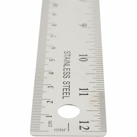 Westcott Stainless Steel Rulers - 12" Length x 1" Width - 1/16, 1/32 Graduations - Metric, Imperial Measuring System - Stainless Steel - Stainless Steel - 12 / Box