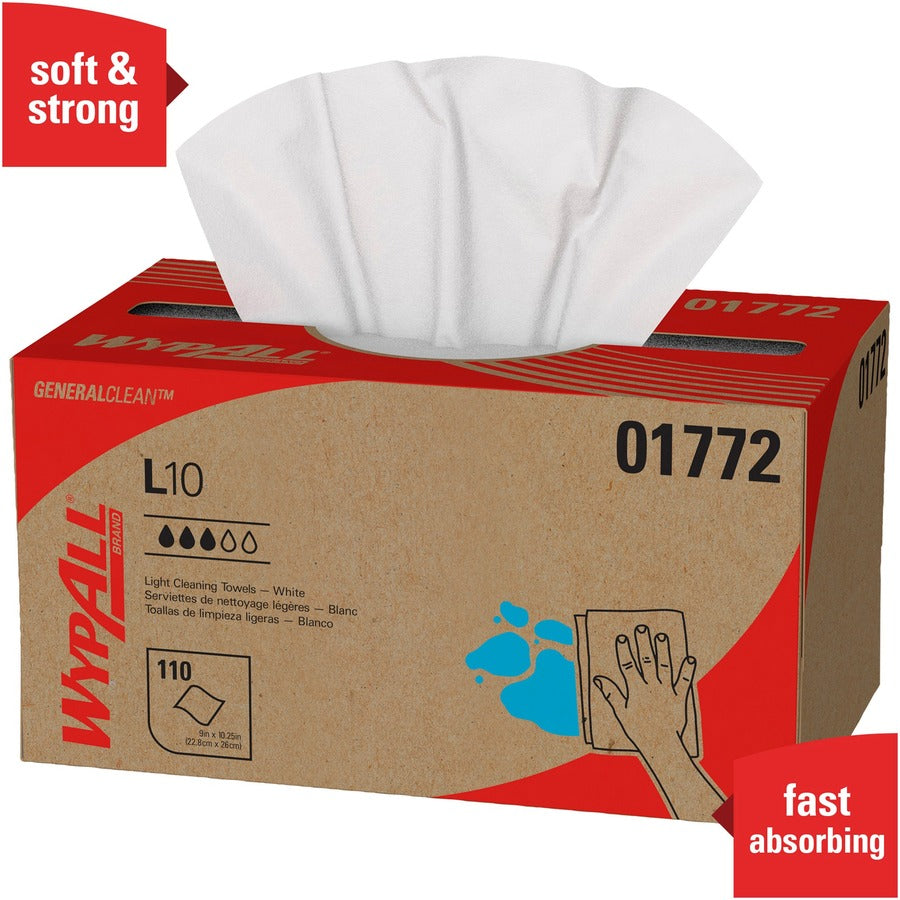 Wypall GeneralClean L10 Light Cleaning Towels - Pop-Up Box - 1 Ply - WhiteBox - 110/Box - 18 / Carton