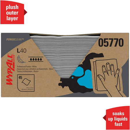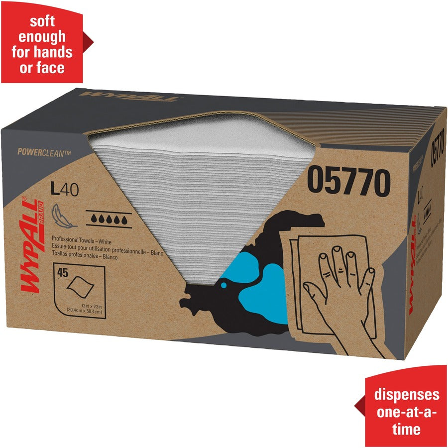 Wypall Power Clean L40 Extra Absorbent Towels - 12" Width x 23" Length - White - 45/Box - 12 / Carton