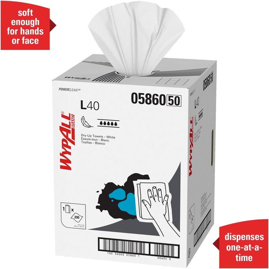 Wypall Power Clean L40 Extra Absorbent Towels - 19.50" Width x 42" Length - 200 Sheets/Roll - White, Blue - Hydroknit - 1 / Carton