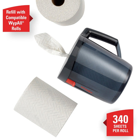 Wypall Reach Towel Dispenser System - Roll, Center Pull - Plastic - Black - Hygienic, Portable, Wall Mountable, Handle - 1 Each